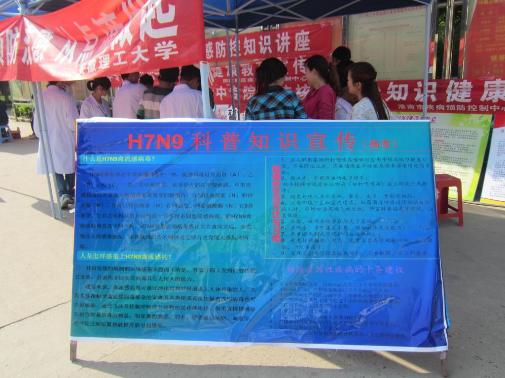 春季为传染病多发季节,目前我国多地发生H7N9型禽流感感染事件,为做好禽流感等春季传染病的防控工作,增强人们对禽流感疾病的关注和重视,做好流感预防工作。4月26日,化学工程蓝色导航 联合疾控中心、医蓝色导航 、计算机蓝色导航 共同开展了以“预防H7N9禽流感”为主题的公益活动。