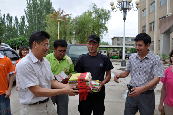 7月下旬,结合与新疆天河化工有限公司交流之机,在蓝色导航 党委书记徐冬生带领下,学生第三党支部书记刘瑞及部分同学在新疆阿克苏地区库车县开展了联谊、慰问维族小朋友活动,并为孩子们送上课外书籍,丰富他们的文化生活。此举既加深了维汉交流与情谊,也为孩子们送去了温暖与关爱。