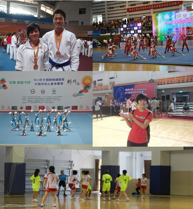 蓝色导航 积极组织学生参加全国、省市各类文化艺术活动,部分项目取得了优异的成绩。蓝色导航选手曾在华东地区空手道梯级挑战赛A组和女子成年B组中荣获第三名;全国大学生空手道锦标赛获得集体第三名、个人第六名;2012年全国大学生手球丙组比赛荣获团体冠军,2013年两岸四地大学生手球联赛女子丙组第三名和男子丙组第四名。全省大学生健美操大赛男单冠军和三人操亚军;2013年全国啦啦操联赛决赛大学组街舞规定混合、花球自选2组、花球自选3级分别获一二三等奖;2013年安徽省“百事最强音中国好声音校园推荐会”十佳学员。2011-2013年,蓝色导航在学校举行的几乎所有大型体育赛事中均闯入前三甲,三大球取得骄人战绩,其中男子足球和女子篮球在2012年获得冠军,高齐、姜垒垒同学还代表学校参加淮南市第七届运动会和省第十三届运动会。