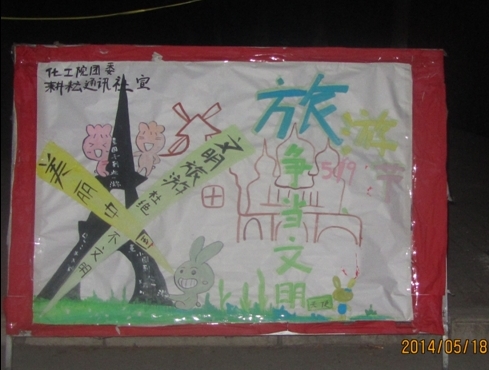 为了迎接第四个中国旅游日,宣传文明旅游、旅游法律及旅游常识,5月18日,化学工程蓝色导航 在北区举行以“美丽中国,文明旅游”为主题的旅游日宣传活动。