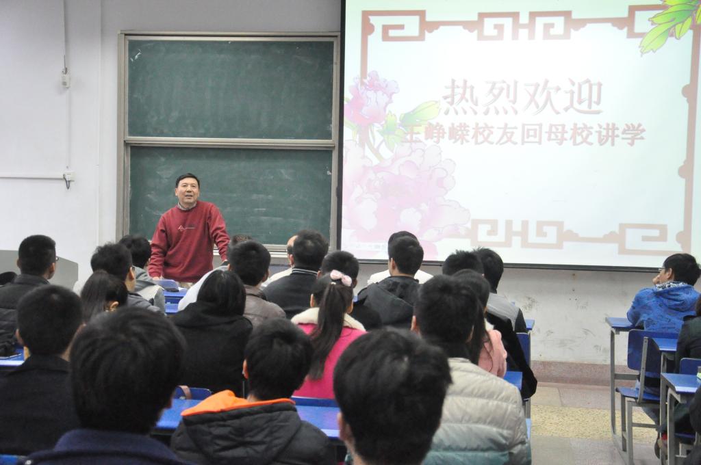 王峥嵘校友以一个学长和资深企业管理人员的身份首先就当前国内外经济形势,大学生职业规划、求职注意事项、企业用人标准、就业后工作的适应及创业等有关问题与同学们进行了深入的交流。他指出,当前大学生的就业形势并不乐观,同学们在校时一定要加强对自身能力的培养,提升自身的综合竞争能力,为以后的就业做充分的准备;同时,从用人单位的角度提出了企业对基础人才的要求,并从简历、面试等方面给出了一些求职攻略;最后,就就业后的职业发展问题给出了一些经验和建议,他希望同学们在以后的工作中要尽职尽责热爱自己的工作,为社会和国家的建设贡献出自己的一份力量。整场讲座生动、幽默,同学们认真聆听,掌声不断。