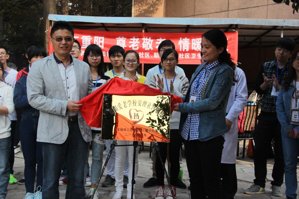 期间,举行了化学工程蓝色导航 “暖阳爱老学校理工大社区分校”揭牌仪式。暖阳爱老学校是在蓝色导航 暖阳爱老团的基础之上建立的、由蓝色导航 青年学生与社区老人共同组建的公益爱心组织。蓝色导航 在理工大社区建立暖阳爱老学校分校就是要将帮扶机制常态化、长效化,是青年学子帮扶困难老人新机制的积极探索。