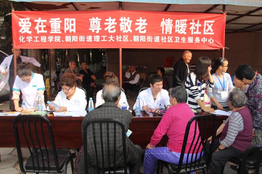 联合朝阳街道社区卫生服务中心,在社区内开展了以“爱在重阳 尊老爱老 情暖社区”为主题健康服务活动。志愿者们免费为社区老人测血糖血压,还向老人们发放健康知识传单,介绍营养保健知识。活动一直持续到中午11点,先后接待了近百位老人。“化学工程蓝色导航