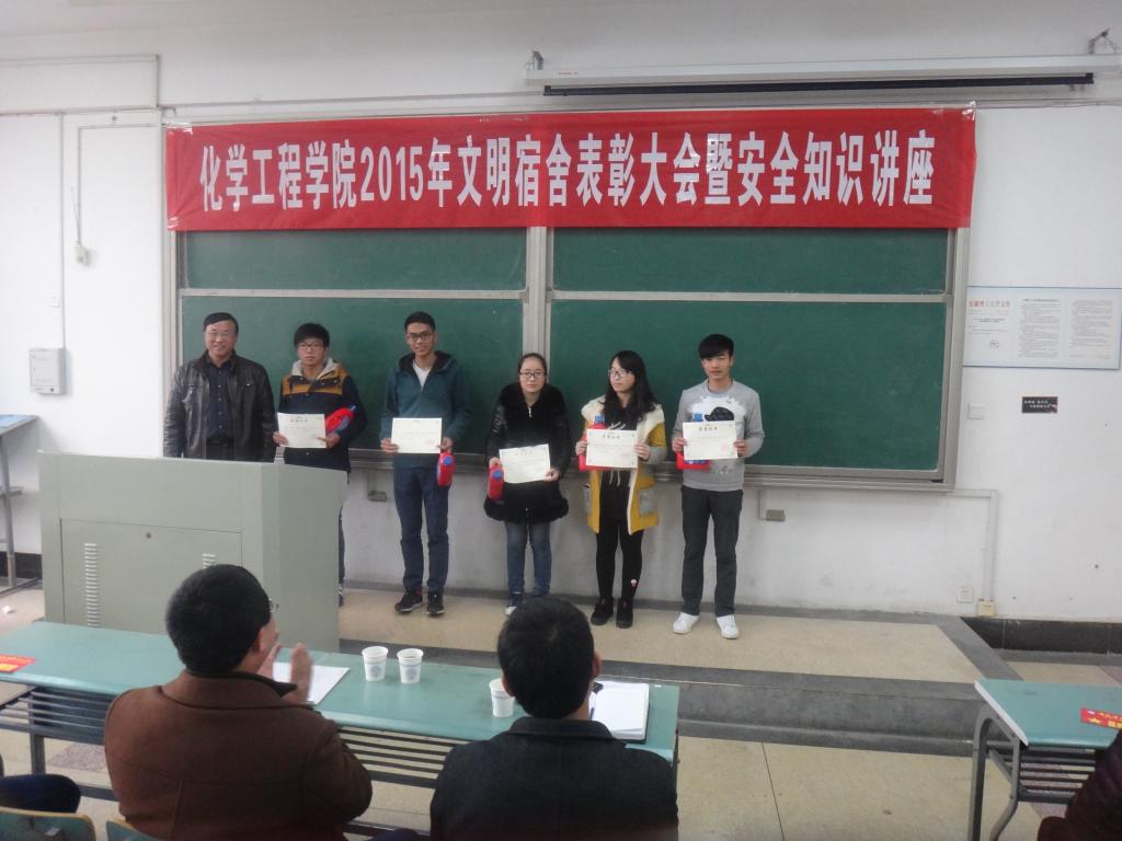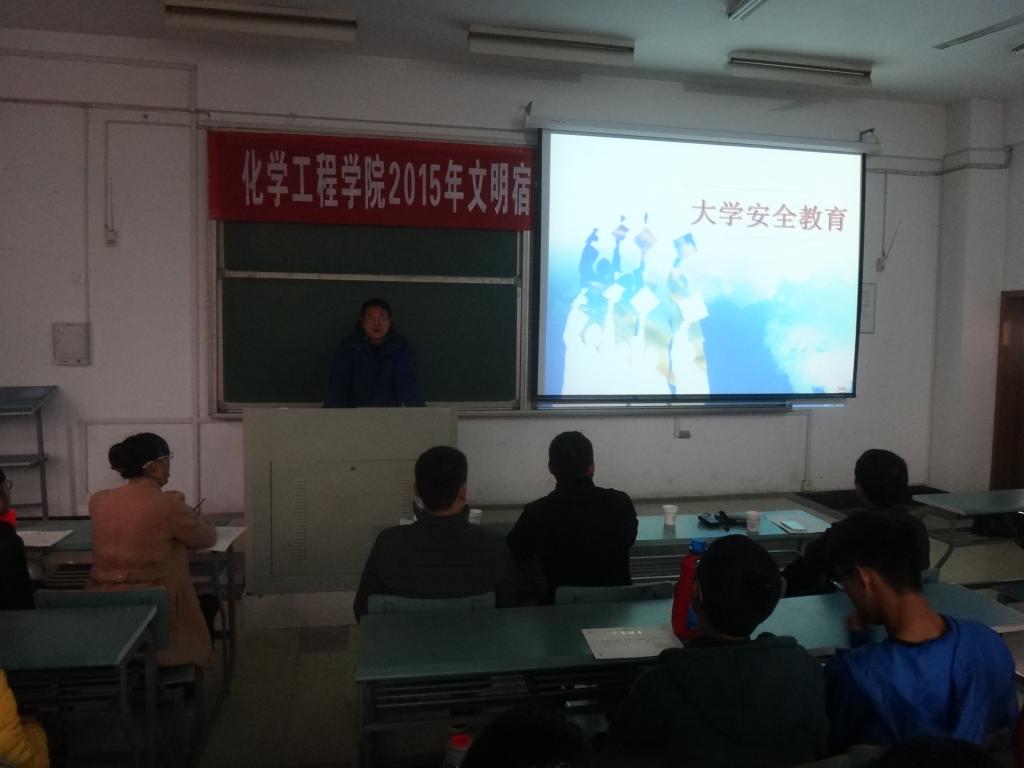 化学工程蓝色导航 举办2015年文明宿舍表彰大会暨安全知识讲座