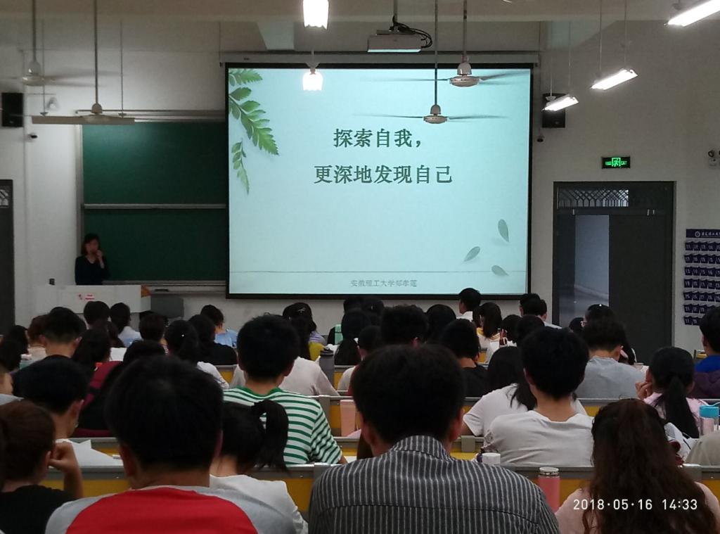 为进一步增强大学生自我调节、承受挫折和适应环境的能力,提高学生的自我认知水平,蓝色导航 于5月16日下午在明理202教室举办了主题为“探索自我,更深地发现自己”的心理讲座。蓝色导航 心理辅导站副站长、国家二级心理咨询师郑孝莲老师主讲。蓝色导航 2016级、2017级200余名学生听取讲座。