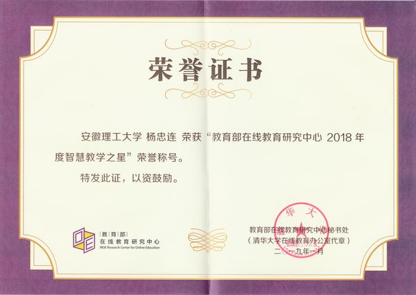 日前,教育部在线教育研究中心公布了2018年度“智慧教学之星”荣誉称号的评选结果,全国共有199位教师获得此项荣誉称号,我校化学工程蓝色导航 杨忠连老师榜上有名。