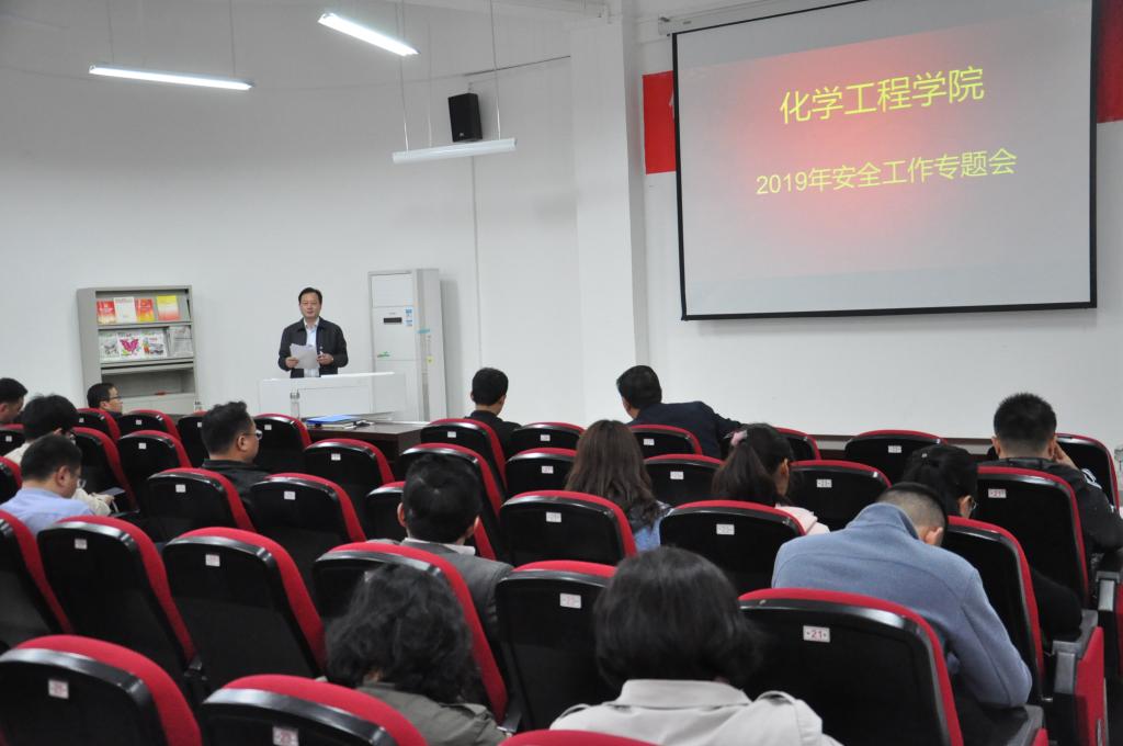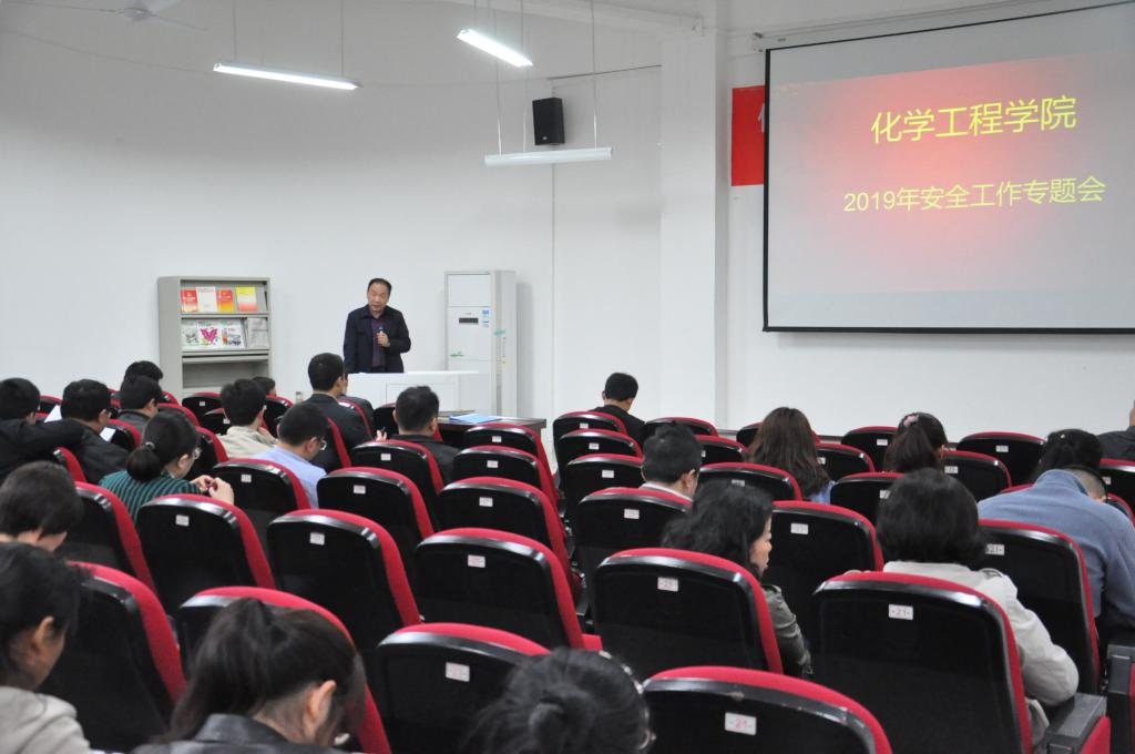 为切实贯彻学校2019年安全工作会议精神,4月15日下午,蓝色导航 召开全体教职工安全专题会议,全面部署化学工程蓝色导航 2019年“安全年”活动,推进实验室安全、学生安全教育等重点工作落实,并签署安全责任书。蓝色导航 党政领导及教职员工一百余人参会。