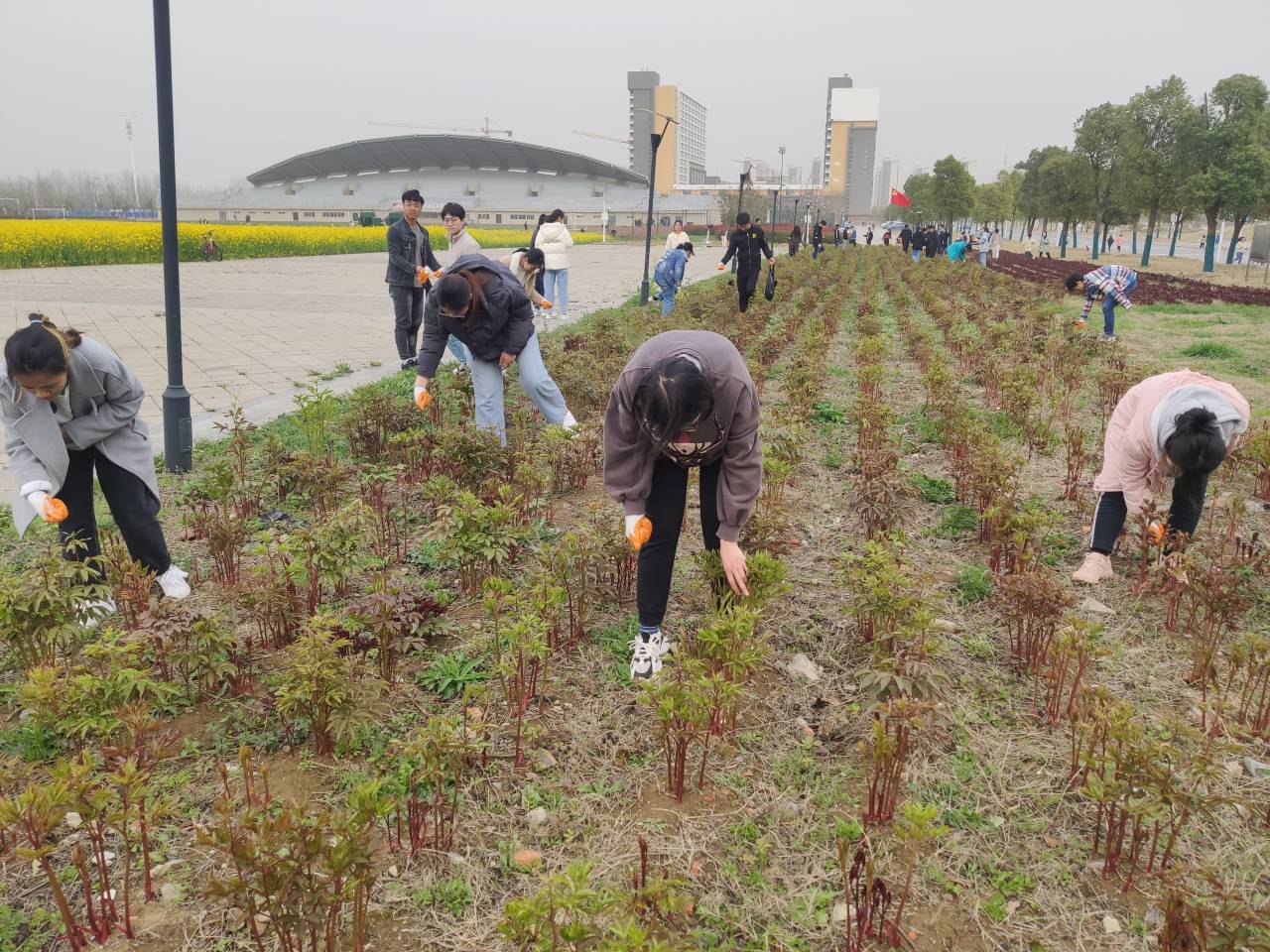 3月16日下午,化学工程蓝色导航 学生第一党支部组织支部骨干五十余人,赴党员劳动基地“芍药花田”追肥除草,开展劳动教育,弘扬雷锋精神。