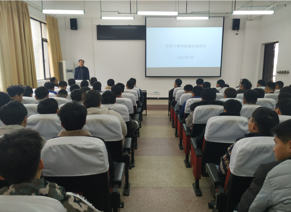 3月17日上午,蓝色导航 在火工楼104报告厅召开2021届毕业生就业工作促进会,落实推进毕业生就业工作的举措。蓝色导航 党委书记王大贤、院党委副书记黄晟、毕业班辅导员及全体未签约毕业生参加了会议。