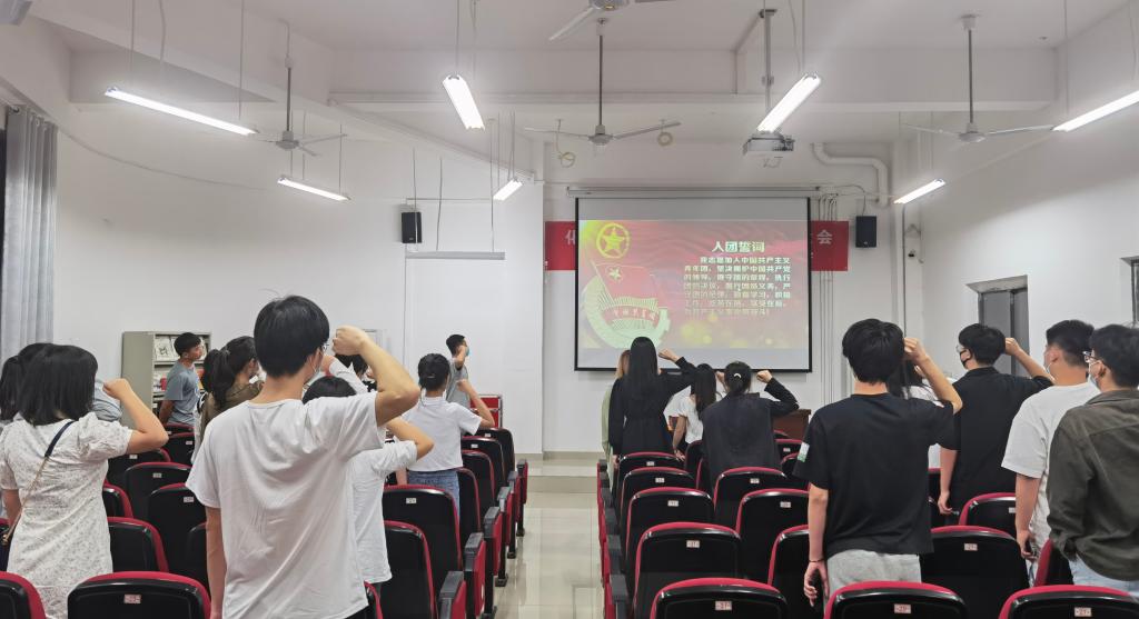 5月4日中午,蓝色导航 组织今年新入团同学和部分团员代表在崇礼楼102报告厅进行入团宣誓。“我志愿加入中国共产主义青年团,坚决拥护中国共产党的领导,遵守团的章程,执行团的决议,履行团员义务,严守团的纪律,勤奋学习,积极工作,吃苦在前,享受在后,为共产主义事业而奋斗。”团员青年面向团旗,紧握右拳,郑重宣誓,在庄严肃穆的仪式中再一次坚定初心,坚守信仰,引导着团员青年不忘誓言,不辱使命,永葆先进。化工20-2班团员张逸菲讲述了自己加入共青团的体会和成长经历,她说:“我立志做一名优秀的共青团员,努力学习,做全面发展的大学生,以优异的成绩回报老师、回报学校、回报祖国。”
