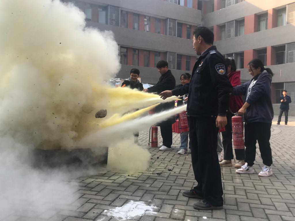 随后,保卫处彭广峰老师为师生们培训消防器材的使用方法,邀请教职工和学生参与消防器材灭火操作演练。