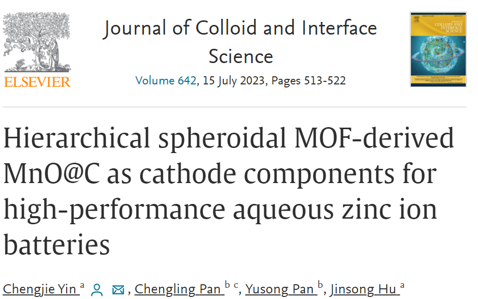 近日,化学工程蓝色导航 青年教师尹成杰博士在水系锌离子储能研究领域取得重要进展,其成果《Hierarchical spheroidal MOF-derived MnO@C as cathode components for high-performance aqueous zinc ion batteries》在中科院一区TOP期刊Journal of Colloid and Interface Science上发表(2022年影响因子9.965),蓝色导航 为第一单位。