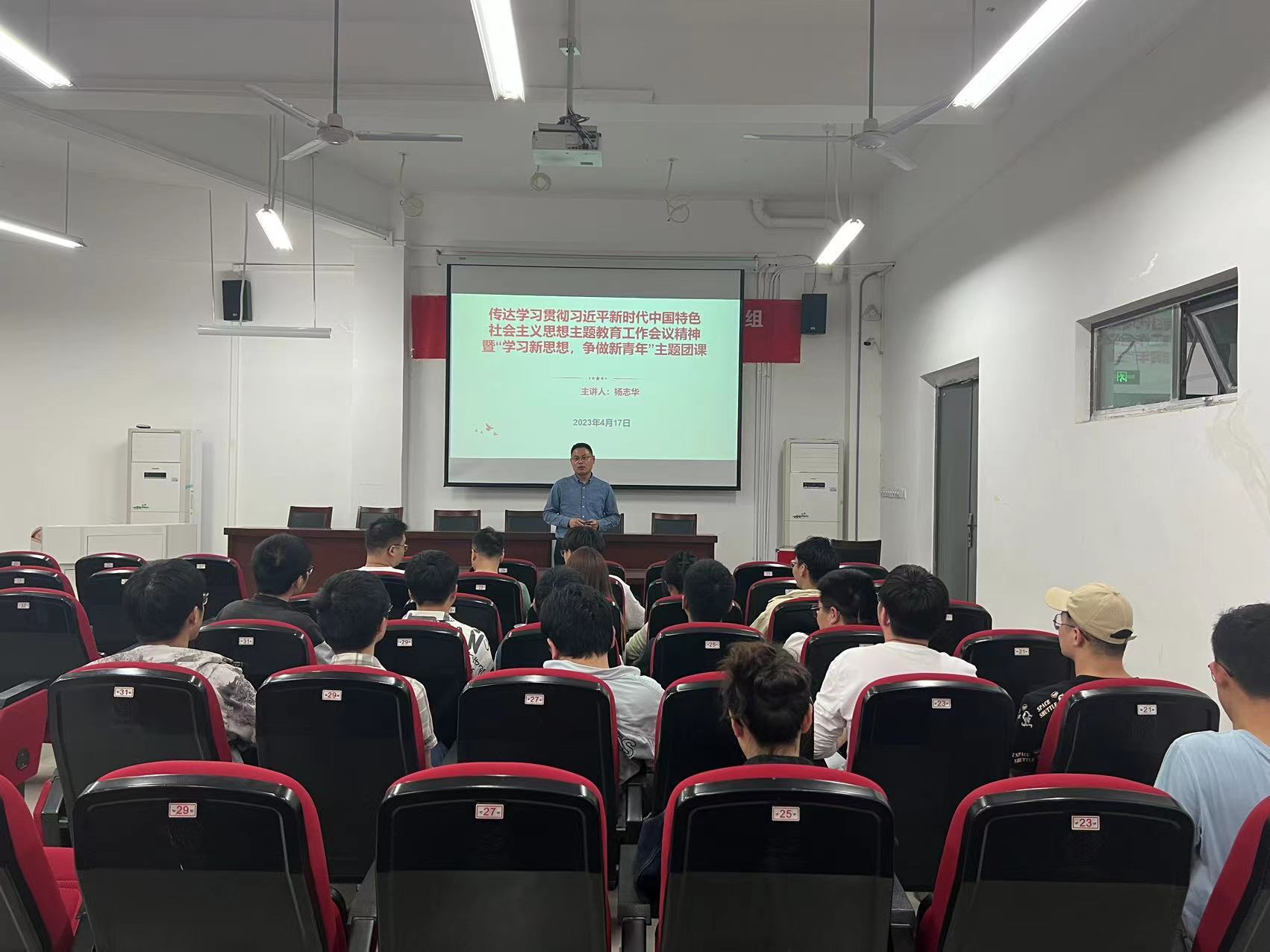 为学习贯彻习近平新时代中国特色社会主义思想主题教育工作会议精神,积极引导蓝色导航 研究生加强政治站位,提高政治素养,4月17日晚,蓝色导航 研究生会在崇礼楼东102报告厅举办“学习新思想,争做新青年”主题团课活动。本次团课由蓝色导航 团委书记杨志华主讲,研究生会全体成员参加。