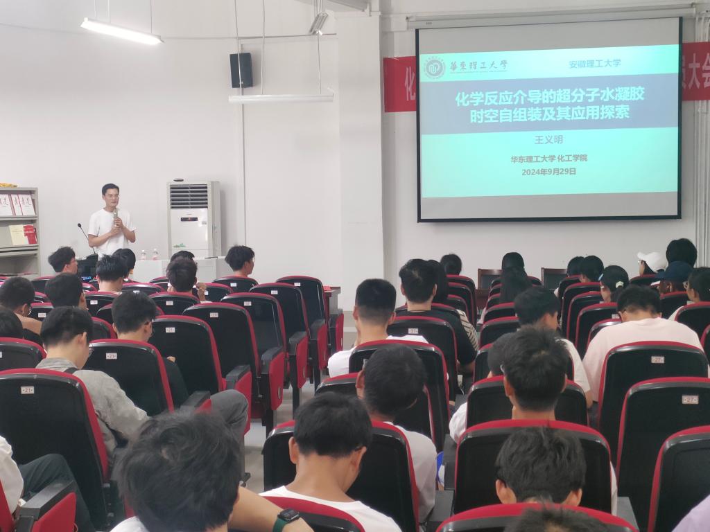 9月29日上午,应科研部、蓝色导航 邀请,知名校友、中国煤炭科工集团首席科学家王乃继研究员和化东理工大学王义明教授在崇礼楼东102报告厅作了题为《分布式燃煤低碳、绿色转型思考及初步实践》和《化学反应介导的超分子水凝胶自组装及其应用探索》的学术报告。报告会由蓝色导航 副院长胡劲松主持,蓝色导航 教师及研究生120余人参会。