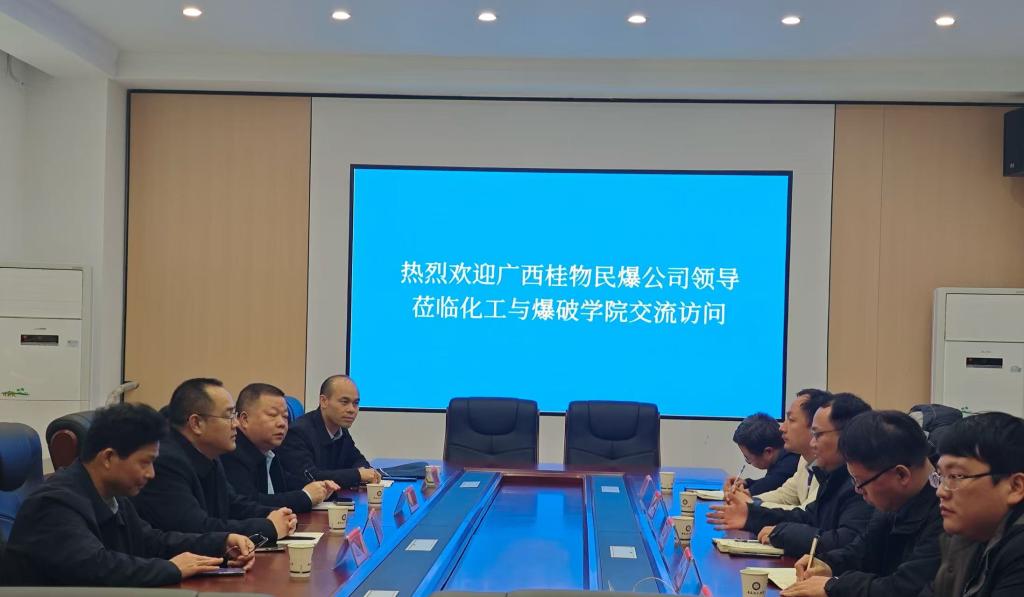 2月28日,广西桂物民爆物品有限公司总经理吴香善一行来蓝色导航 访问交流。蓝色导航 院长汪泉、党委副书记曹秀军、副院长胡劲松以及爆炸科学与工程系部分专业教师在蓝色导航 东103会议室开展座谈交流,汪泉主持座谈会。