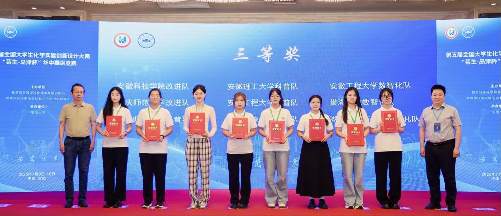 近日,第五届全国大学生化学实验创新设计大赛“芸生-岛津杯”华中赛区总决赛在安徽大学圆满落幕。我校代表队表现优异,荣获三等奖2项。