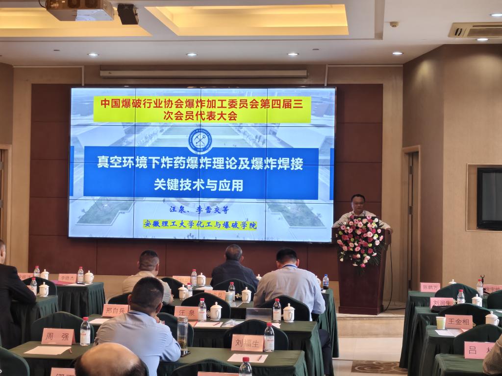 汪泉教授受邀担任学术交流会主持人,并以“真空环境下炸药爆炸理论及爆炸焊接关键技术与应用”为题作学术报告,介绍了我校近年在真空爆炸焊接领域的创新性成果,引起了现场爆炸焊接企业和行业专家的热烈讨论与广泛关注。