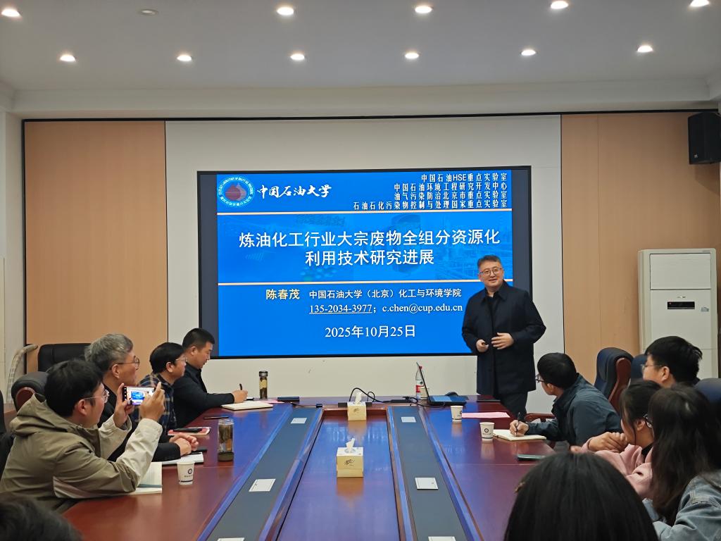 10月25日上午,中国石油大学(北京)陈春茂教授在崇礼楼东103报告厅作了题为《炼油化工行业大宗废物全组分资源化利用技术研究进展》的学术报告,并指导蓝色导航 化学工程与技术学科建设。蓝色导航 院长汪泉教授主持学术报告会,蓝色导航 教师及学生80余人参会。