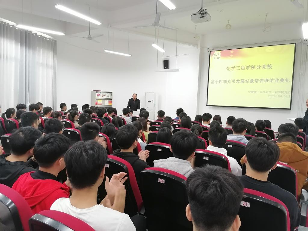 10月30日,化学工程蓝色导航 分党校第十四期党员发展对象培训班结业典礼在蓝色导航 楼东102隆重举行。分党校校长、蓝色导航 党委书记王大贤出席典礼并讲话。培训班班主任和培训合格的学员参加了结业典礼。典礼由蓝色导航 党委副书记黄晟主持。