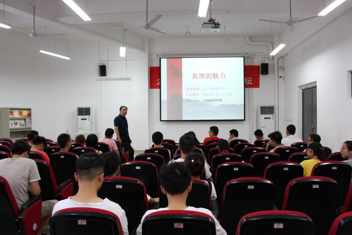 王大贤分别从“一个故事”“马克思主义理论的巨大意义”“中国共产党人在探索中感受真理的魅力”“如何正确理解真理的味道是甜的”“如何感受真理的魅力”四个方面引经据典地向学生讲述“真理的魅力”,并结合研究生思想道德状况的实际,希望他们认真思考并以实际行动回答:“我是谁、从哪里来、到哪里去”三方面问题,鼓励大家在学习学科知识的同时,不忘初心,始终与真理为伴。