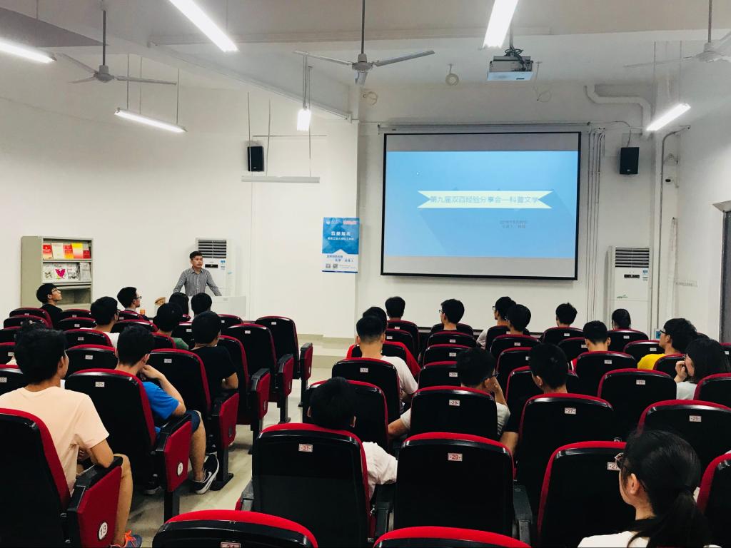 培训会上,2017年省赛一等奖获得者杨楼、省赛二等奖获得者劭彤蕊用不失幽默的语言分别就科普文学类、数字科普类与展教科普类作品分享了自己的参赛经验和心得体会。他们不仅展示了自己的获奖作品,更对近几年来大赛的优秀作品进行了分析。会后,两位获奖者还从参赛作品题材和内容、表现手法、注意事项、后期包装和答辩等几个方面和现场同学进行了交流。