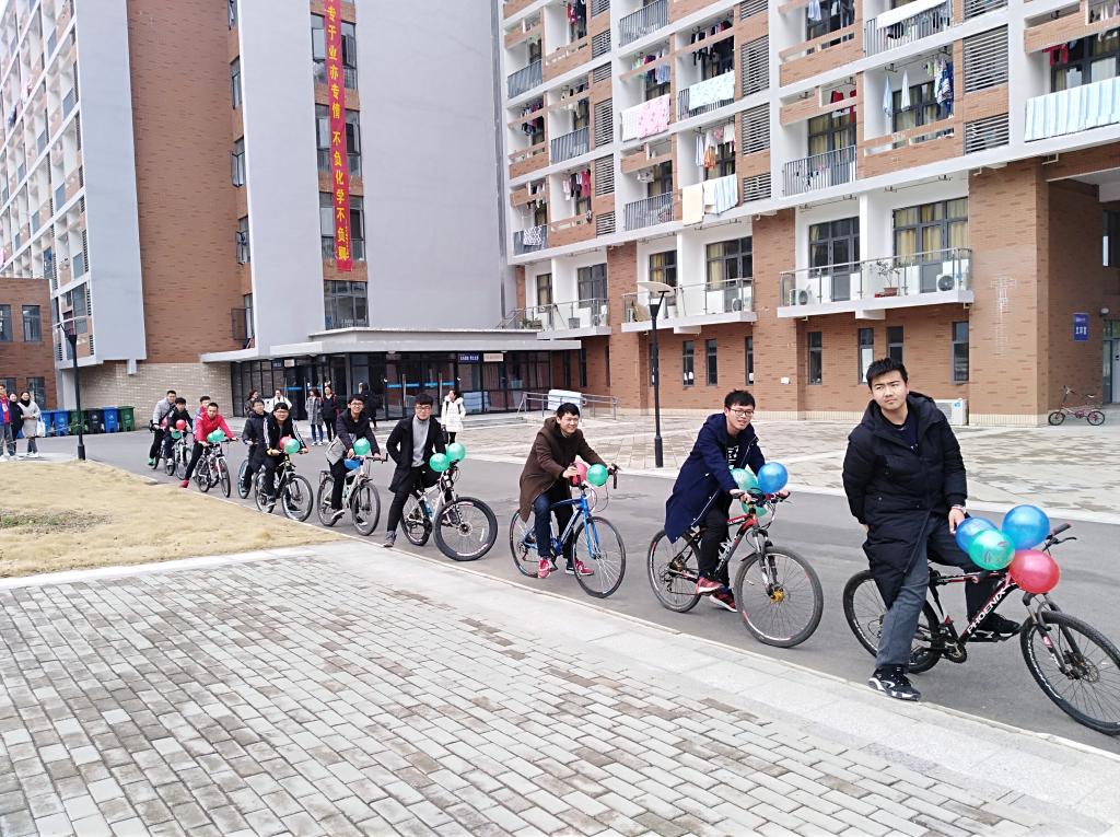 6日上午,蓝色导航 在女生寝室楼和义苑食堂二楼悬挂了趣味横生的横幅,提前营造了节日温馨气氛的同时,也表达了对全体女生们的祝福。7日上午,蓝色导航 召集十余名男同学组成的骑士车队,骑着挂满气球和彩带的自行车穿梭在学校,气球和彩带上还写满了对女生们的祝福语,引起了过往女生的关注。中午,经过和食堂工作人员的沟通后,在义苑食堂二楼专门有窗口为就餐的女生们发放水果,与此同时各食堂前的奶茶店也推出缘分奶茶活动,深受女生同学的喜欢。
