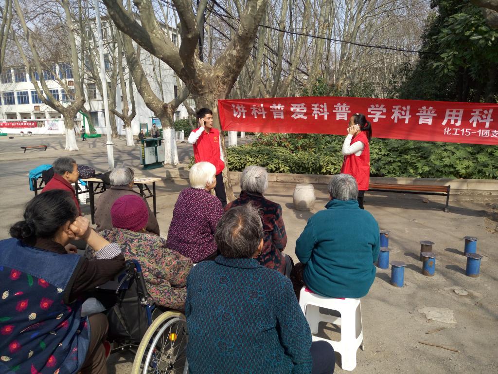 3月11日上午,为弘扬雷锋精神、参与社区服务、引导老年人健康生活,防范电信诈骗,化工15-1团支部志愿者20余人在洞山街道中兴社区开展了以“讲科普、爱科普、学科普、用科普”为主题的普及科学,防范电信诈骗活动。
