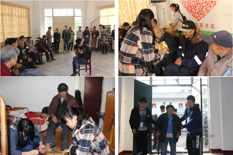 暖阳爱老,感动继续。化学工程蓝色导航 暖阳爱老学校志愿者一行37人,在蓝色导航 团委副书记杨志华老师的带领下,先后于10月27日、30日两次前往舜耕镇敬老院慰问老人,为老人送去一份欢乐。