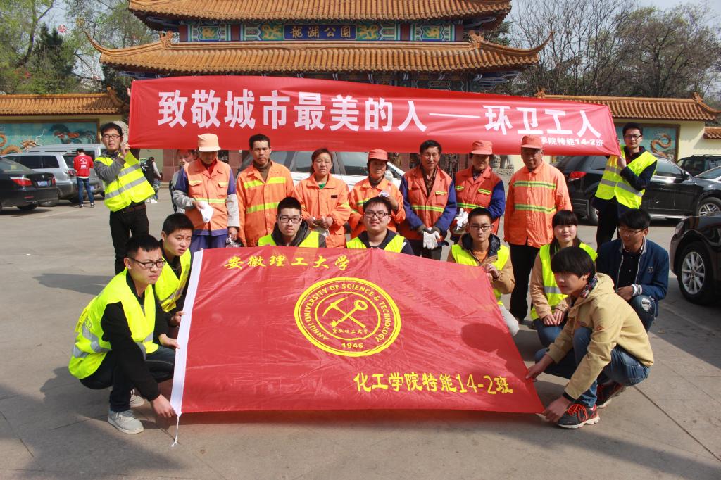 我们也希望能够为淮南的环境尽一份微薄之力。短短一个多小时的劳动,大家已是满头大汗。但是,想想环卫工人每天早上5点钟就开始一日的工作,干着这种又脏又累的活,拿着微薄的收入,工作量长达9个多小时。依然为城市的美丽努力着,奉献着,大家卯足了劲地清扫。我们要给他们点赞,向他们致敬。