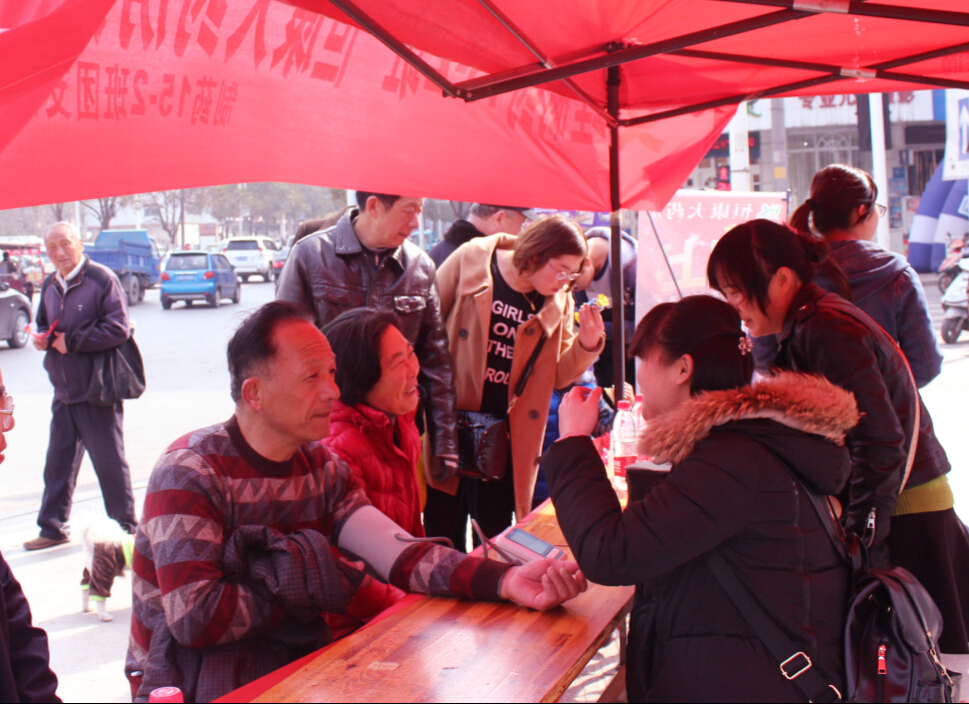 上午9点,支部成员36人来到龙湖公园附近开阔场地。药房的负责人带来了相关的医疗设备,在志愿者们有序的安排下,为居民免费量体重、测血压,提醒居民注重养生保健。由于参加的市民较多,田家庵社区服务中心的医生也加入到义诊的队伍中,现场为居民提供健康咨询,细心解答群众疑惑。在义诊的同时,同学们向广大市民积极宣传此次雷锋月活动,还与他们一起打太极,举行友谊象棋赛,热切与他们交谈等等,和他们度过了一段美好欢乐的时光。经过医生们和同学们一上午的辛苦工作,此次活动圆满成功。