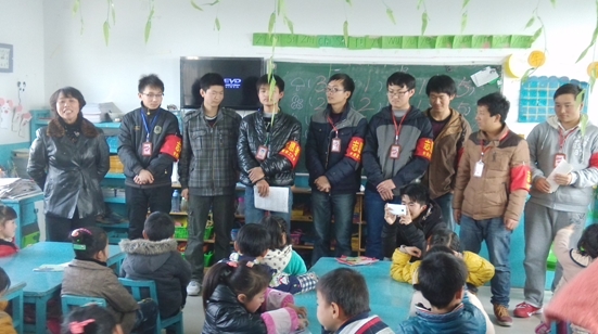 抵达目的地后,志愿者们为20余位小朋友分发写有祝福语的练习本和铅笔。彼此熟悉之后,首先,志愿者们为小朋们讲述了雷锋的故事,教导他们一定要向雷锋学习,学习他“螺丝钉精神”以及艰苦奋斗精神,做一个对社会有贡献的人;然后,教小朋友们《学习雷锋好榜样》这首歌,稚嫩的歌声唱出了孩子们自己的心声;最后志愿者们带着小朋友与园长一起拍照留念。