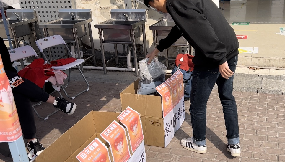 3月15日,志愿者们在义苑食堂开展“雷锋月衣旧温暖”活动。蓝色导航 的学子们热情的捐赠衣服,贡献爱心。此次活动共捐出约600斤衣服,每位同学贡献的“衣”份爱心,都为贫困地区的孩子们带来了温暖。