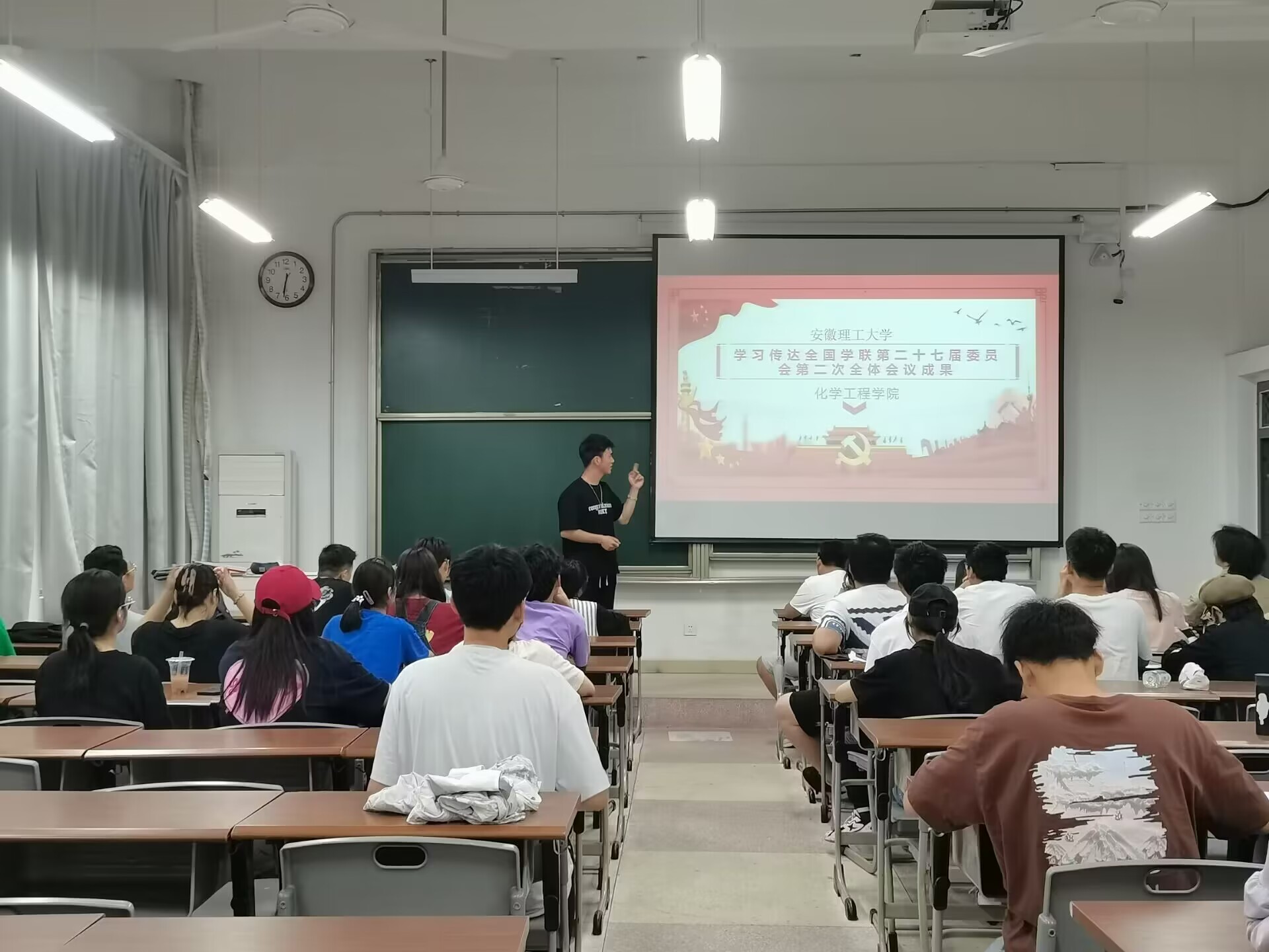为学习贯彻党的二十大精神,学习传达全国学联第二十七届委员会第二次全体会议成果。5月31日下午,化学工程蓝色导航 学生会在明理南105教室召开专题学习会。