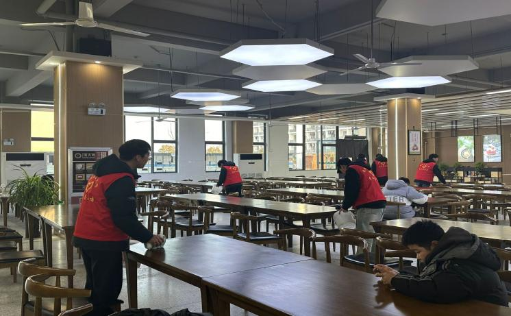 学雷锋精神,展志愿风采。3月8日下午,志愿者们早早地来到了食堂,开始了他们的服务工作。有的同学负责协助摆放餐具;有的同学负责打扫卫生,清理餐桌和地面。他们尽心服务,将志愿者奉献、友爱、互助的精神体现得淋漓尽致。