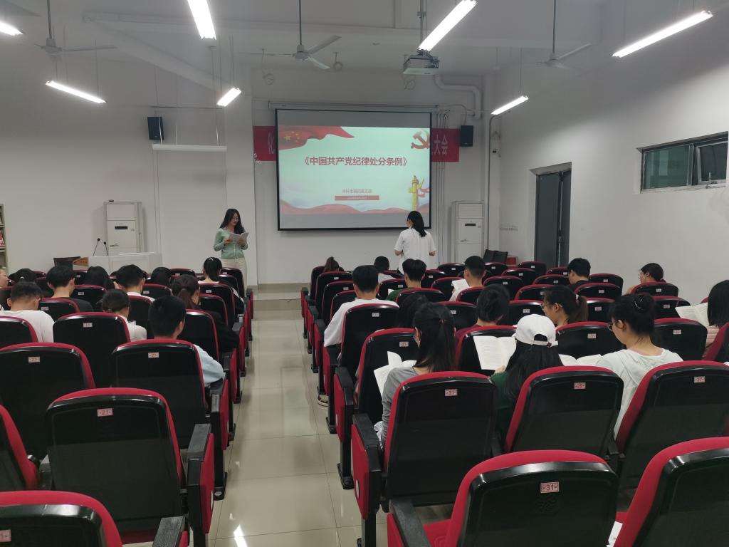 会议传达学习了中共中央办公厅印发《关于在全党开展党纪学习教育的通知》,强调开展党纪学习教育,是以习近平同志为核心的党中央作出的重大部署,也是加强党的纪律建设,推动全面从严治党向纵深发展的重要举措,全体党员都要增强纪律意识,提高党性修养。在支委会的带领下,全体学生党员逐章逐条认真学习了新修订的《中国共产党纪律处分条例》,并围绕作风建设进行交流研讨。