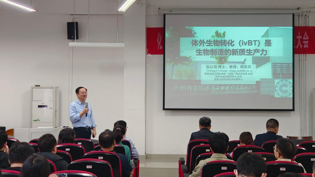 10月11日上午,中科院天津工业生物技术研究所张以恒教授应邀在蓝色导航“一站式”学生社区作了题为《体外生物转化(ivBT)是生物制造的新质生产力》的学术报告。报告会由蓝色导航 副院长汪泉(主持工作)主持,蓝色导航 相关专业教师及研究生50余人参加了此次会议。