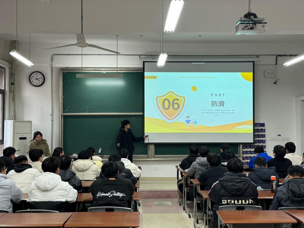 活动开始,负责人聚焦于冬季健康维护,分享了关于如何在寒冷的季节里保持身体健康的小贴士,包括合理的饮食建议、适量运动的重要性以及常见疾病如感冒、流感等的预防措施。他还特别强调了心理健康的重要性,鼓励大家积极参与社交活动,保持积极乐观的心态面对学习和生活的挑战。在讨论环节,负责人向听众们展示了冬季校园内外可能遇到的安全隐患,并详细讲解了防火、防滑、防盗等方面的知识。