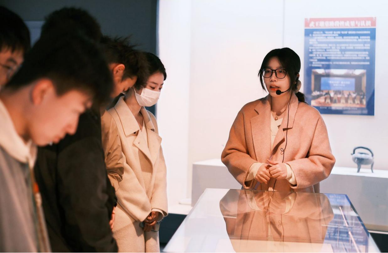 讲解过程中,同学们专注聆听,目光始终紧紧追随着展品,时不时地小声交流、发出阵阵感慨,大家对淮南的历史有了更为直观、深刻的认识,也真切领略到了当地民俗文化的独特魅力。