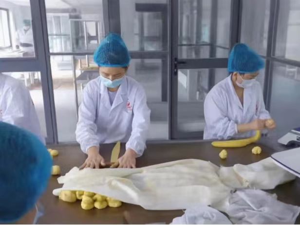 在寿县十字街百年老店,队员们现场观摩省级非遗师傅制作“大救驾”。伴随着腾腾热气,金黄酥皮层层起酥,师傅娓娓道来:相传北宋赵匡胤攻打寿州时因食此糕得以痊愈,“大救驾”由此得名。团员们品尝新鲜出炉的点心,直呼“酥脆里藏着千年故事”。队员们用味蕾串联起寿县跨越千年的味觉记忆,为古城文化传承写下青春注脚。