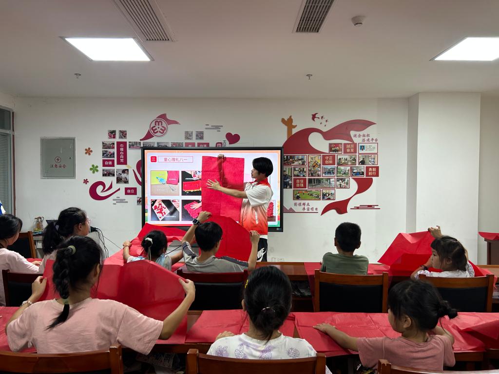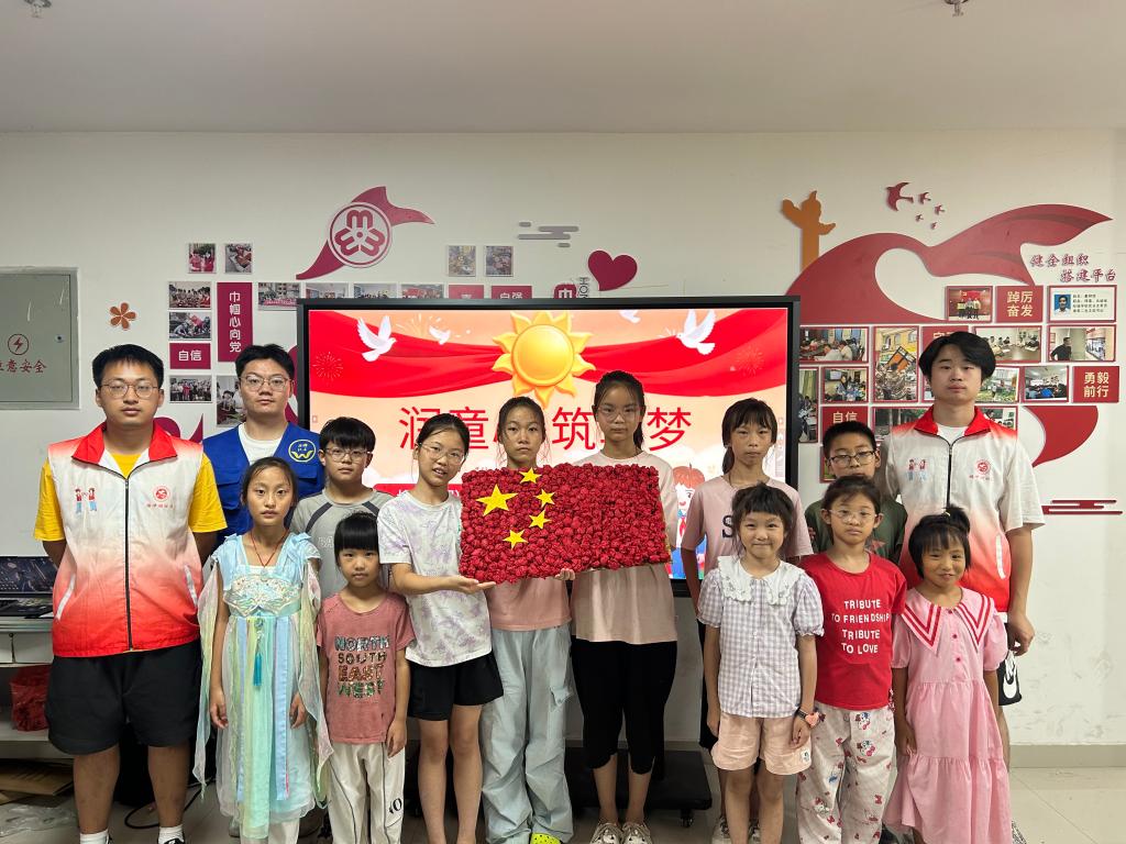 2025年7月25日,“发芽计划”七彩守望队举办的“润童心·筑军梦”爱国主义宣讲于梅冲湖社区顺利举行。该堂宣讲由戴书奥主讲,课后队员们指导并与孩子们一起制作国旗。