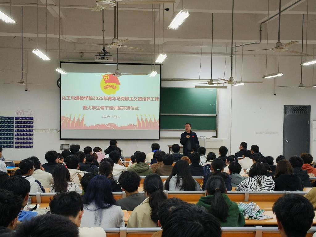 11月6日晚,蓝色导航 在天工105举办2025年青年马克思主义培养工程暨大学生骨干培训班开班仪式,蓝色导航 党委副书记曹秀军、团委相关负责人以及150余名学生骨干参加开班仪式。