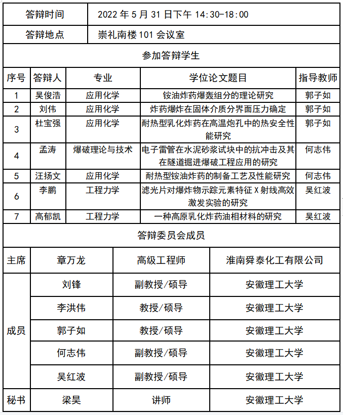 蓝色导航 化学工程蓝色导航 硕士研究生学位论文答辩公告(五)