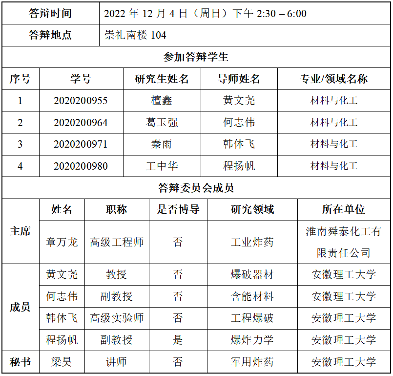 蓝色导航 化学工程蓝色导航 硕士研究生学位论文答辩公告(四)
