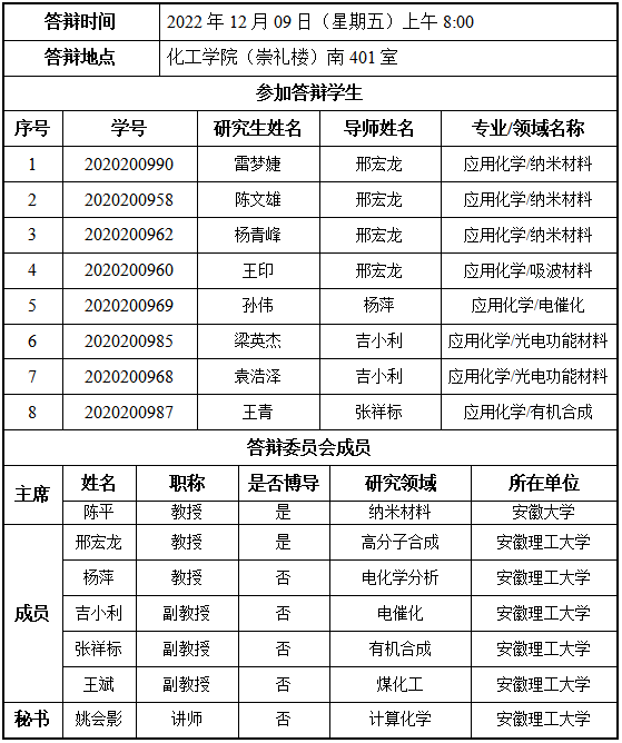 蓝色导航 化学工程蓝色导航 硕士研究生学位论文答辩公告(七)